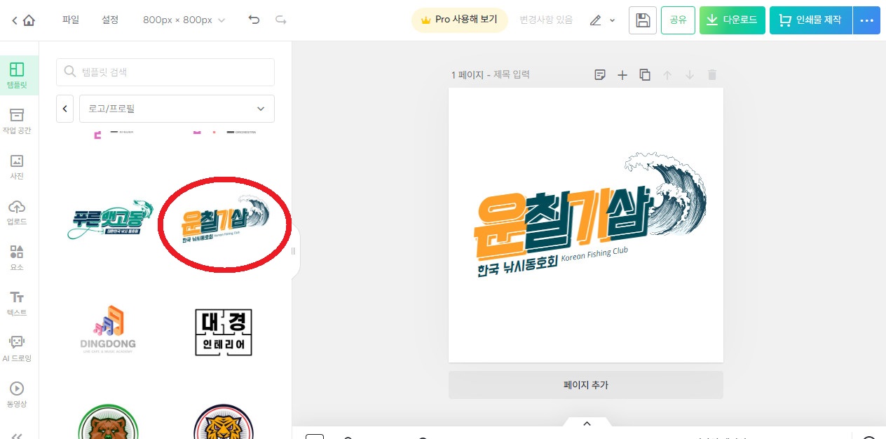 3. 글자수정, 색수정, 디자인 수정하여 로고삽입