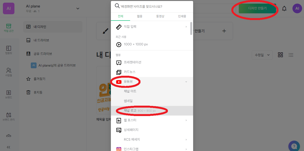 1. 파일 (디자인 만들기)-유튜브-채널로고