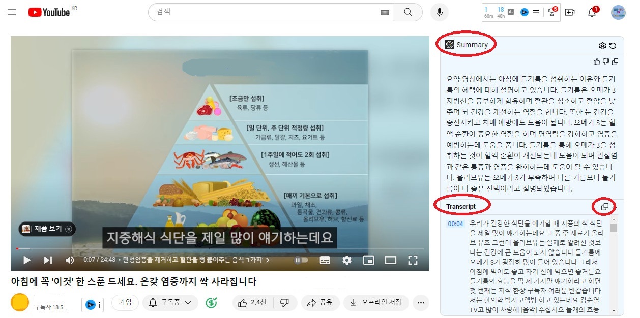 12. ChatGPT를 사용한 Google/YouTube요약 확장 프로그램 설치하여 스크립트 복사하여 분석