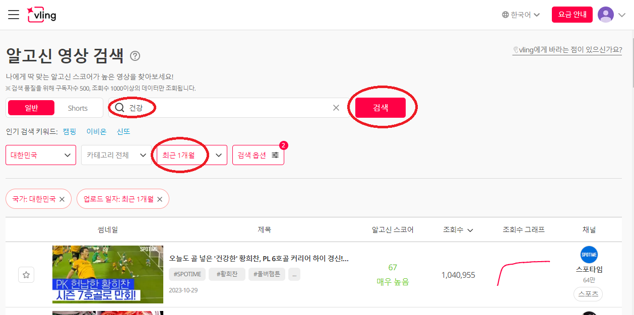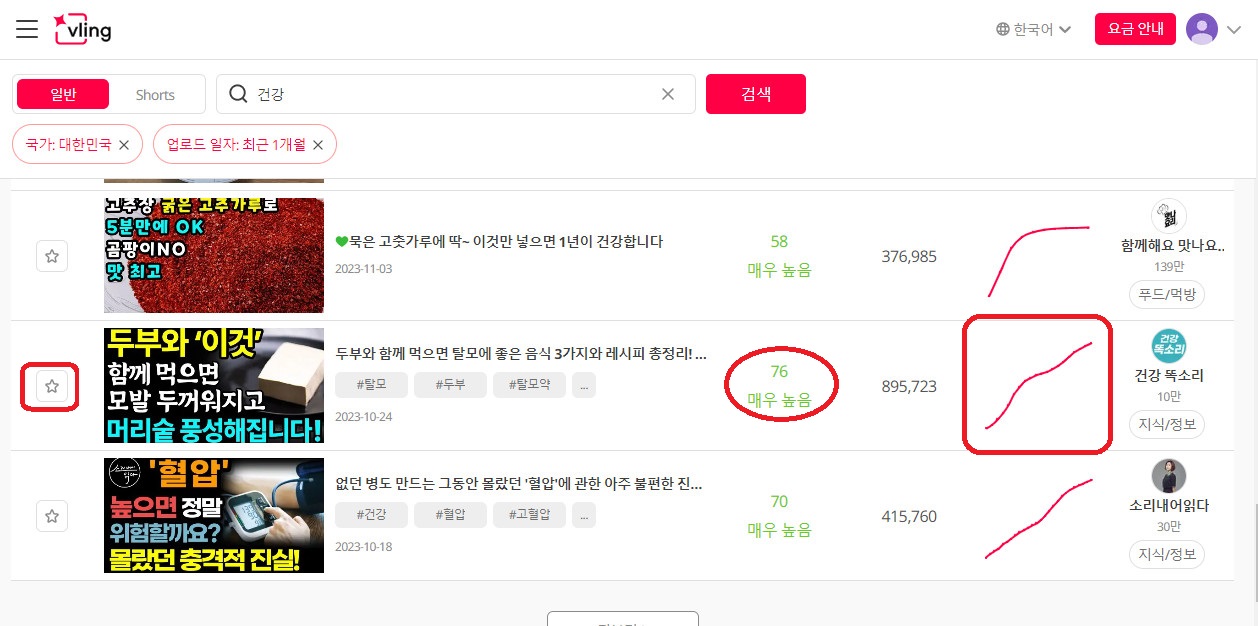 3.알고신스코어70이상, 조회수 수직상승 그래프영상선택