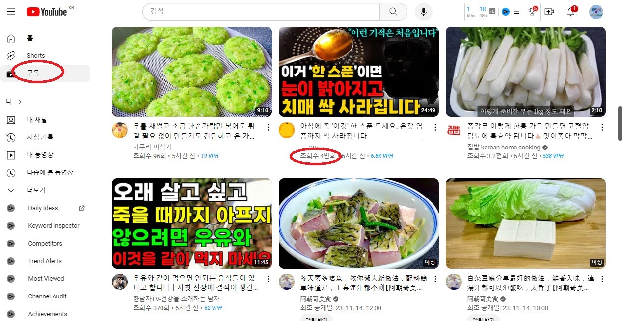 10.영상보기-구독 (같은 주제 유명 채널을 30개 정도 구독)