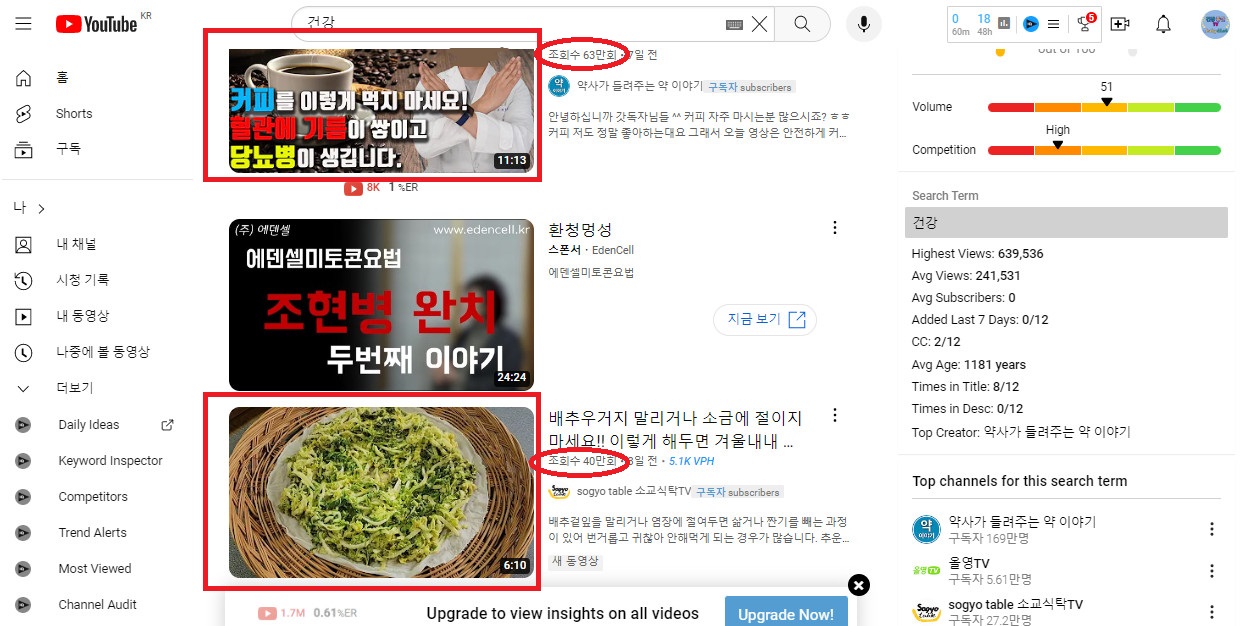 3. 최신 영상중에 조회수 높은 영상을 벤치마킹한다