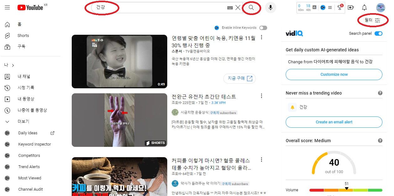 유튜브 검색에서 인기 동영상 찾기