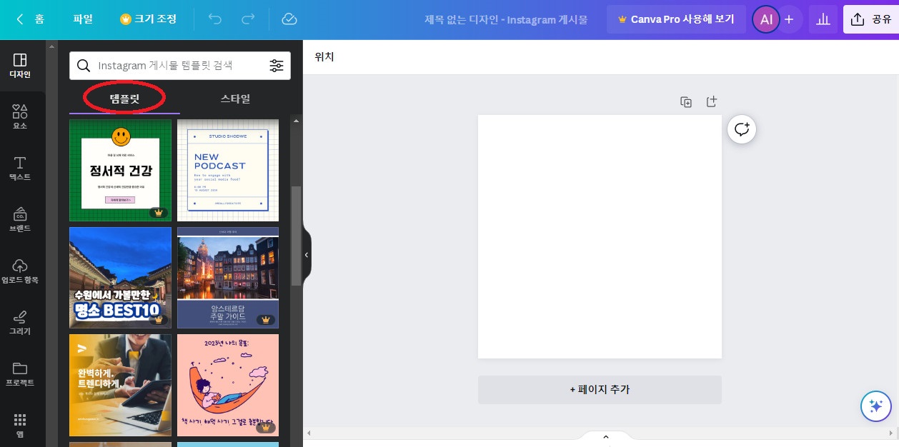 -인스타그램 instagram게시물-템플렛 선택 (왕관마크는 프리미엄 유료 템플렛)