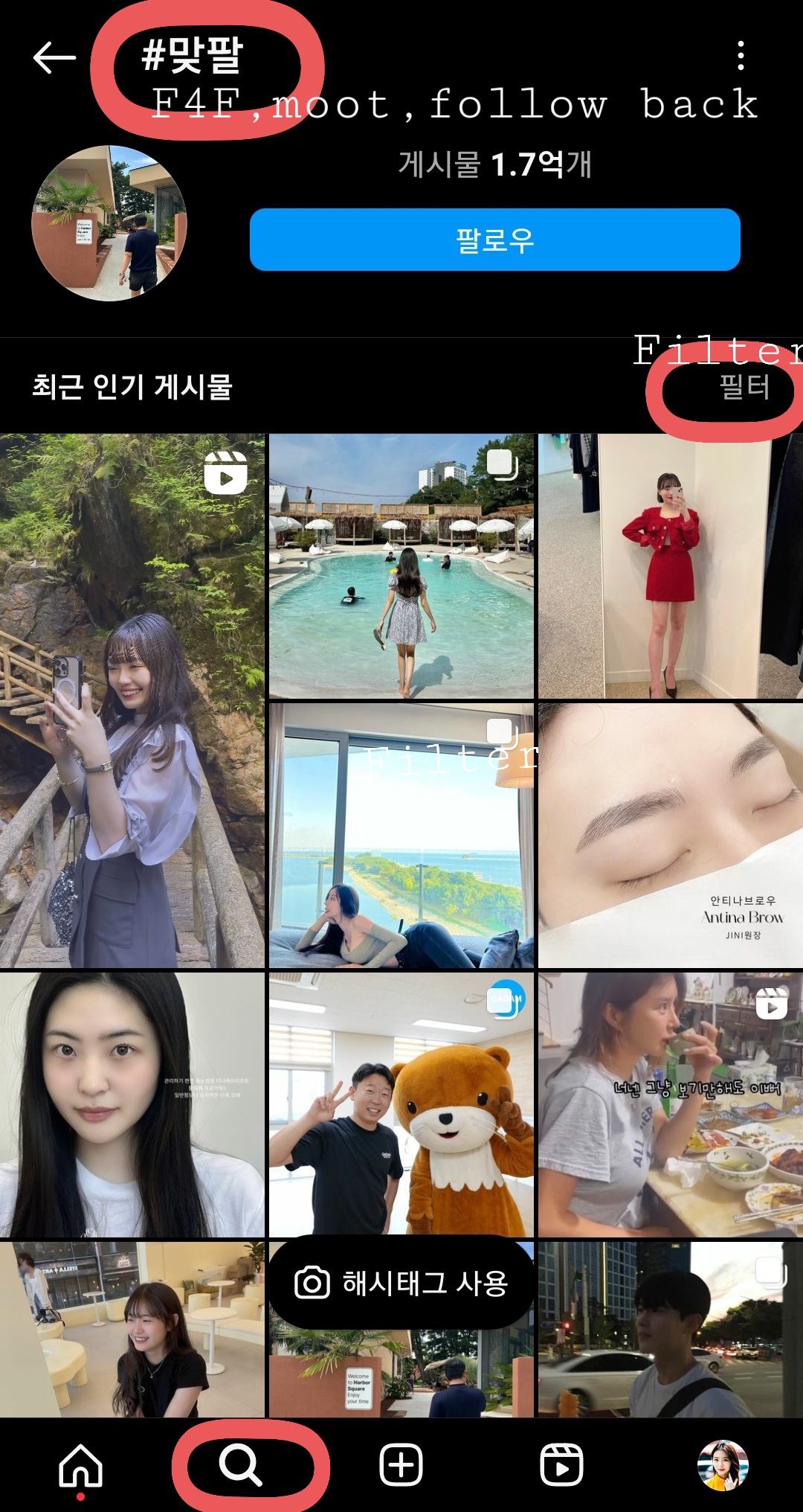 본인 게시물에도 #맞팔 해시태그 넣어서 팔로우 유도