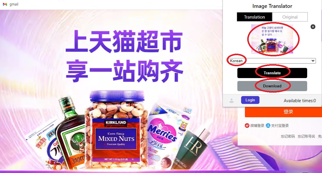 -타오바오 접속-이페이지 번역하기-한국어 타겟언어 설정