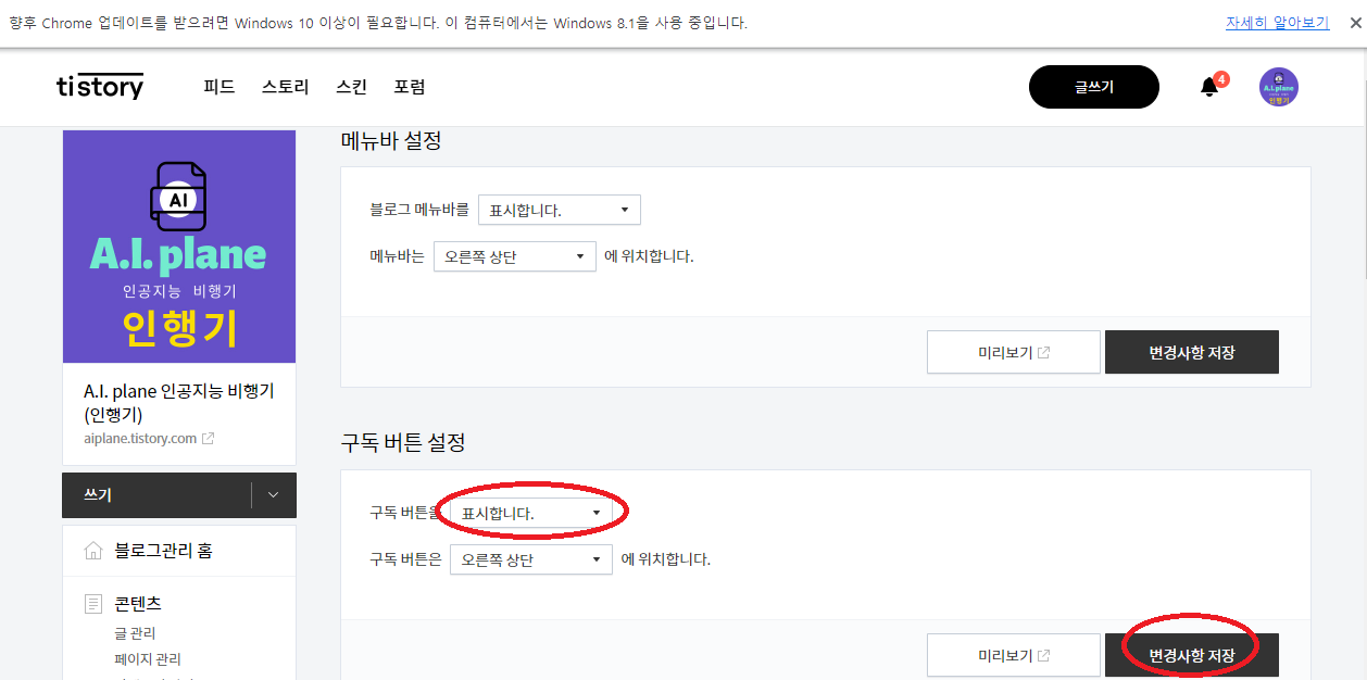 티스토리 구독 버튼 설정